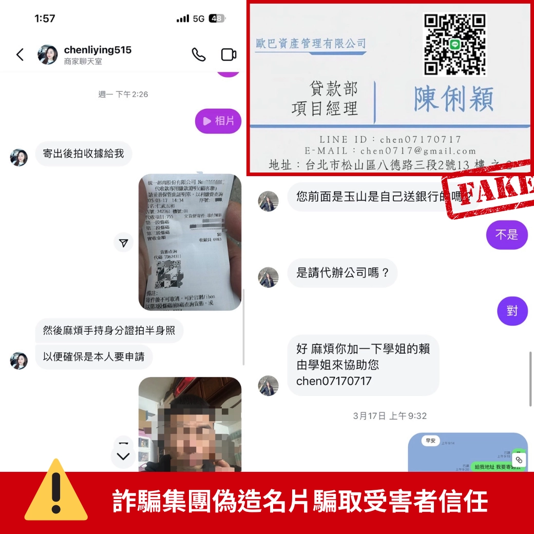 詐騙集團仿冒歐巴資產顧問名片,透過社群媒體、電話聯繫等方式誘導客戶提供個資,甚至要求以超商寄件方式遞交證件,疑似利用受害人資訊進行人頭帳戶詐騙,並以手機預付卡獲取騙取下一位受害者的詐騙電話。這類詐騙行徑不僅影響民眾財務安全,也嚴重損害正派經營公司的聲譽。